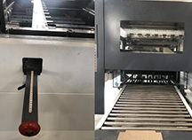 自動收紙裝置,收紙有序。收紙臺車上有兩個檢測開關,可檢測收紙部位。可通過人機界面方便快捷地調節收紙臺的自動復位適應不同的紙張厚度,當紙張滿時,自動警報會提醒操作員及時更換紙張接收站。